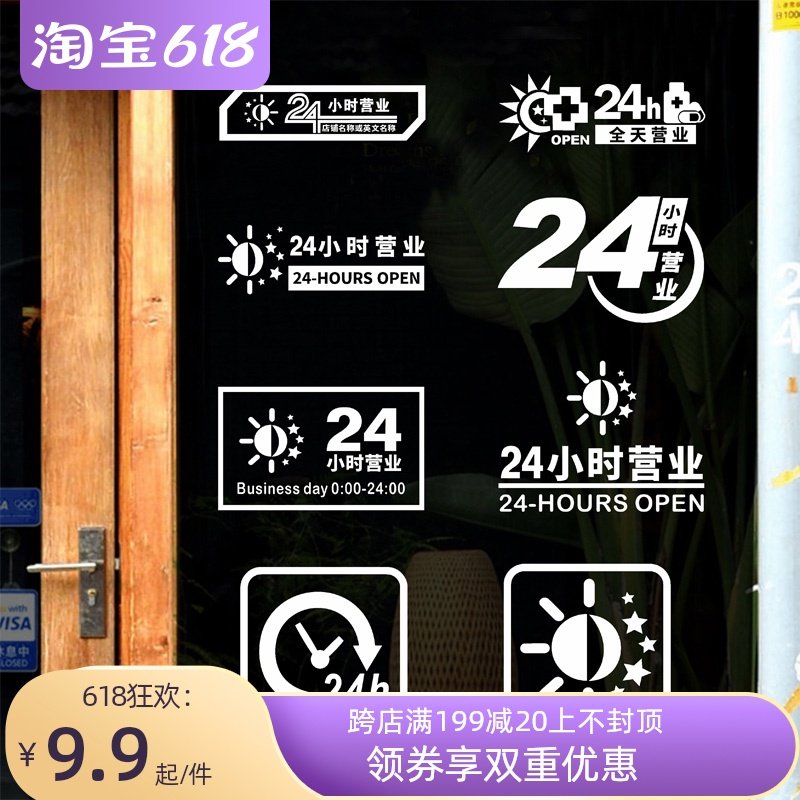 24小时药店便利店店铺玻璃移门橱窗装饰提示营业墙贴装修定制贴纸热门设计联盟服务商