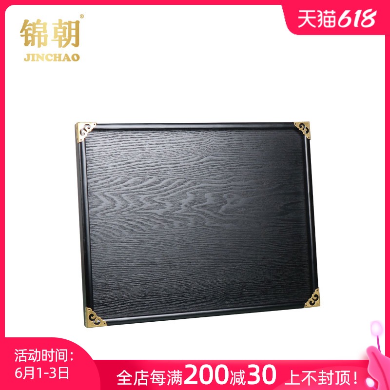 新中式木质黑色铜扣托盘售楼处收纳盘装饰品酒店会所书房软装摆件热门设计联盟服务商